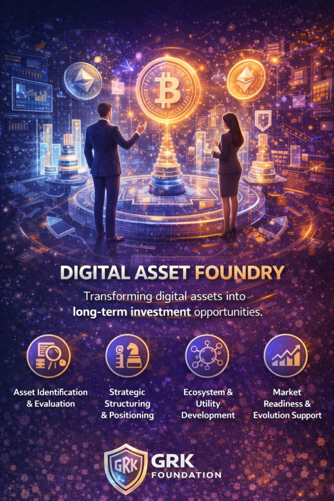 The future of investing lies in digital assets built with purpose, structure, and sustainability. Through the Digital Asset Foundry, GRK Foundation helps shape digital assets into investment-ready opportunities grounded in long-term thinking rather than short-term speculation.